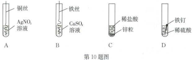 10. A 如图为某学习小组探究金属化学性质时所做的四个实验,仔细分析后回答下列问题。