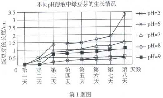 (4)pH 为 8 的溶液中绿豆芽生长最快(合理即可)