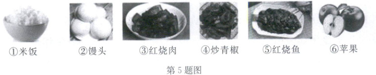5. A (2025·南谯区三模)某学校食堂为学生准备的午餐食谱如图所示: