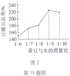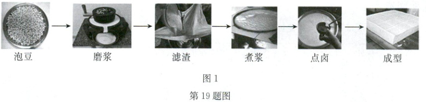 19. B 在课外实践活动中,同学们学习了豆腐的制作,主要流程如图 1。