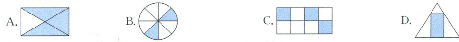 18. 下列图形中,涂色部分的面积正好占总面积的25%的是()。