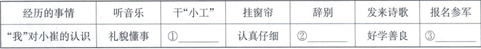 4. "我"对小崔的认识是随着经历的事情逐步加深的,请结合全文填写下表。(3分)