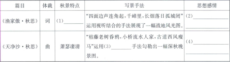 (4)羁旅之苦、思乡之愁(每空1分)