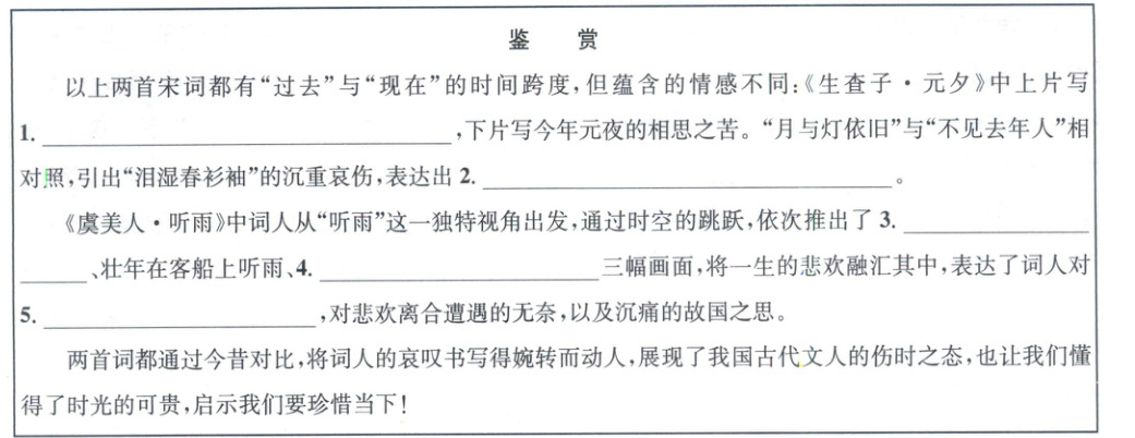 阅读上面两首宋词,将下面的“鉴赏”补充完整。(5分)