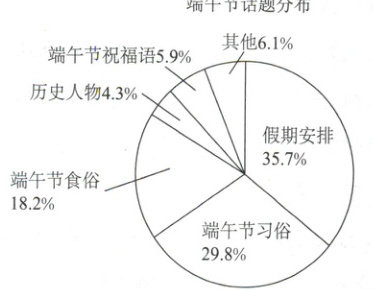 现在,人们越来越关注传统节日。下图是某数据研究中心对“端午节话题分布”的相关统计,请你说说它主要传达了什么信息。(2分)