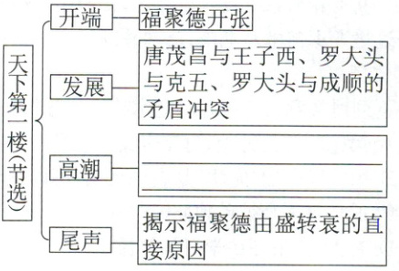 1. 学校策划开展《天下第一楼(节选)》阅读分享活动,以下是小组同学摘取的他人对该作品的评价。请阅读下面的文段,完成以下任务。(8分)