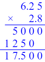 $0.25×104$ $3.2×0.7 + 5.1÷1.7$ $1.25×(2.8×0.8)$