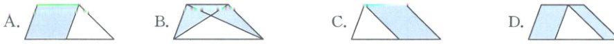 14. 在下面 4 个完全相同的梯形中,涂色部分的面积与其他不同的是(