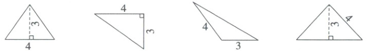 15. 下面 4 个三角形的面积可以用算式“$4×3÷2$”计算的有(