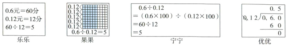 28. 下面是四名同学计算$0.6÷ 0.12$的方法。(