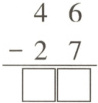 1. 竖式计算“46 - 27”时,想:个位上 6 减 7 不够减,从(