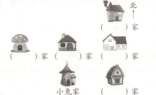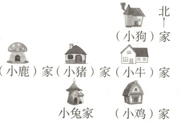 小猪家在小兔家的北面;小鹿家在小猪家的西面;小鸡家在小兔家的东面,小牛家的南面;小狗家在小牛家的北面。