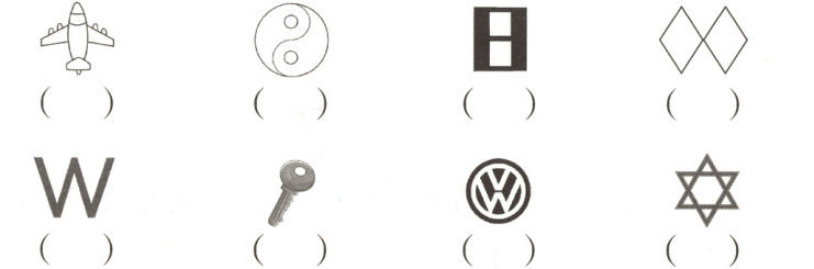 4. 下面给出的字的一半都是从对折的纸上剪下来的,你能猜出这些字吗?填在括号里。