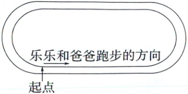 26. 星期天,乐乐和爸爸沿着学校$300$m的环形跑道进行晨跑。乐乐的爸爸每分钟跑$240$m,乐乐每分钟跑$180$m。如图,他们同时沿相同方向从起点出发,几分钟后乐乐的爸爸从背后追上乐乐?