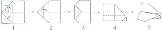 5. 下图是一款新型纸飞机的折法,步骤 1 中的∠1 是()。