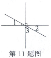 11. 如图,$\angle1 = 30^{\circ}$,$\angle2=$( )°,$\angle3=$( )°。