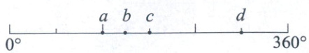 9. 下图的线段表示$0^{\circ}$到$360^{\circ}$,下列说法中,正确的是(
