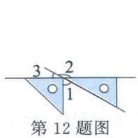 12. 把一副三角尺摆成如图所示的样子,那么$\angle1=$( )°,$\angle2=$( )°,$\angle3=$( )°。