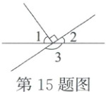 15. 如图,∠1 = 55°,则∠2 = ( )°,∠3 = ( )°。
