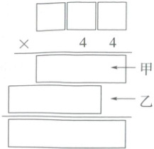9. 右面竖式中,第二个因数是44,则箭头所指的甲、乙两数的关系是(
