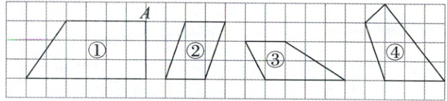 )是梯形。(填序号)(2)如果要把①号图形变成一个等腰梯形,点$A$可以移动到哪里?请用字母$B$标出点$A$移动后的位置,并画出这个等腰梯形。