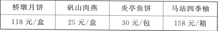 (3)矾山肉燕开展促销活动,买4盒送1盒,275元最多可以买到多少盒?(4分)
