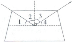 10. 光在遇到许多物体表面时都会发生反射(如图),$\angle 2$和$\angle 3$分别叫做入射角和反射角,入射角总是等于反射角。已知$\angle 1=30^{\circ}$,$\angle 3=60^{\circ}$,那么$\angle 4=$()。