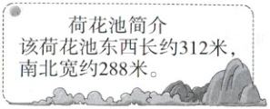 5. “四面荷花三面柳,一城山色半城湖”描绘的是济南的秀美风光。风景区内一处荷花池,介绍如下图,该荷花池经历过一次扩建,它的长不变,宽扩大为原来的3倍,成了现在的样子。原来荷花池的面积是多少平方米?