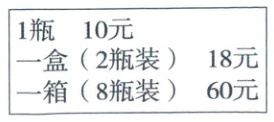 8.10×8=80(元) 18×(8÷2)=72(元) 60<72<80,尽量多买一箱(8瓶装)的划算 200÷60=3(箱)……20(元) 20÷18=1(盒)……2(元) 3×8+2×1=26(瓶)