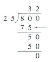 6. 水果市场运来800kg水果,每25kg装一箱,一共可以装多少箱?竖式中“←”所指的“75”表示()。