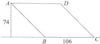 )$^{\circ}$。(6分)(2)用四巧板可以拼出平行四边形ABCD,如下图。已知$BC=106$mm,BC边上的高为74mm,请思考下图是如何用一副四巧板拼出来的,用虚线把你的想法在图中表示出来。(4分)