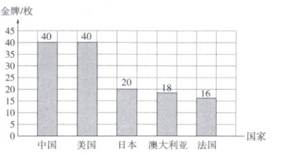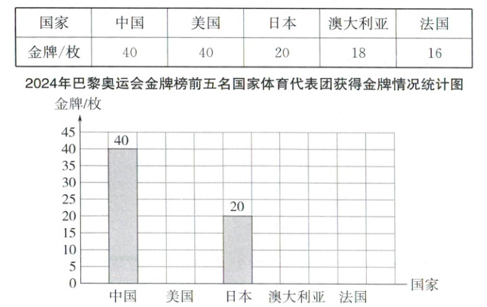 22. 下面是 2024 年巴黎奥运会金牌榜前五名国家体育代表团获得金牌情况统计表。