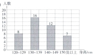 (3)43 19 140cm及以上的有19人