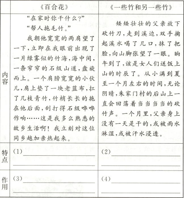 (3)从感情上拉近了“我”和小通讯员的距离,写出了小通讯员的勤劳、善良