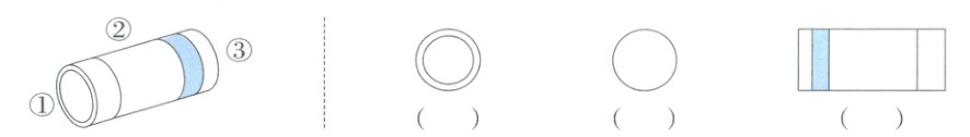 3. 下面右边的三幅图分别是在①、②、③哪个位置看到的?把相应的序号填在括号里。