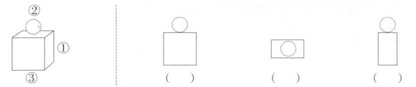 2. 下面右边的三幅图分别是在①、②、③哪个位置看到的?把相应的序号填在括号里。