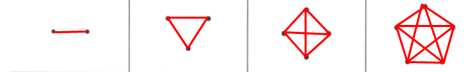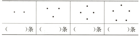 2. 过下面每幅图中的任意两点画线段,最多画几条?画一画,数一数,填一填。