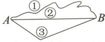 4. 如图,从A到B有三条路可走,小华从A到B走(
