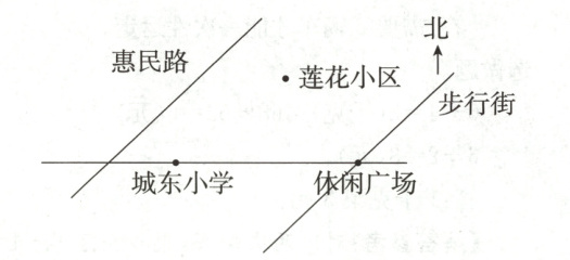 (2)他们最后来到步行街,步行街经过休闲广场,并与惠民路平行。请在图中画出步行街的位置。(5分)