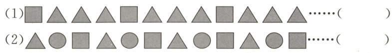 1. 照样子摆下去:△△○○○△△○○○……第 89 个的形状是(