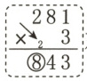 6. $\begin{array}{r} 281\\ ×_{2}3\\ \hline 843\end{array}$左面的竖式中,箭头所指的“2”表示 2 个(