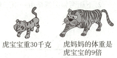 1.30×9=270(千克) 答:虎妈妈体重是270千克。