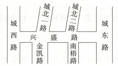 (2)答案不唯一,如:兴盛路和城东路;兴盛路和城西路。
