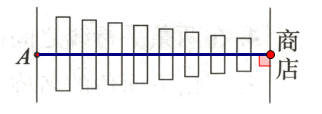 连接A点与商店所在直线,作垂线段。因为从直线外一点到这条直线所画的垂直线段最短。