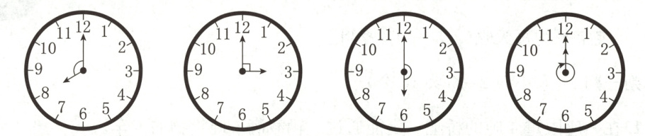 1. 写出下面各钟面上的时针和分针组成的角的名称和度数。(16 分)