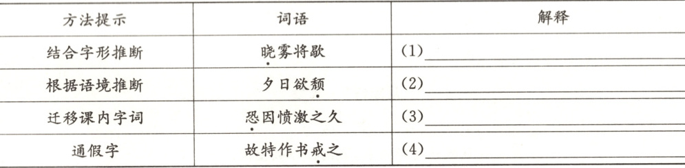 9. (4 分)请参考方法提示,解释下列句中加点的词。