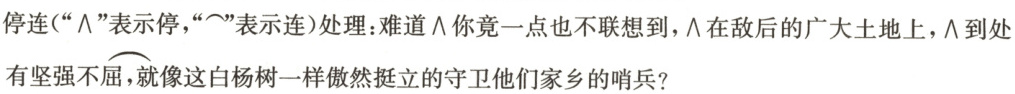 C.节奏处理:难道/你又不更远一点想到,这样枝枝叶叶靠紧团结,力求上进的白杨树,宛然象征了/今天在华北平原/纵横决荡,用血写出新中国历史的/那种精神和意志?