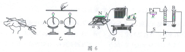 6. 电和磁的应用研究在推动科学技术进步方面发挥了至关重要的作用。通过一系列的实验和观察,我们能够更好地理解电和磁的性质以及它们之间的相互作用。关于如图6所示的电和磁的实验,下列说法正确的是(