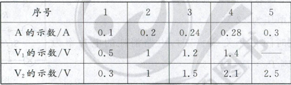 (4)观察表格中电流与$V_{2}$示数可知,电流增大时,$V_{2}$示数从0.3 V增至2.5 V,呈正相关,且图线乙不是直线,符合灯泡电阻随温度变化的特性。图线甲为直线,对应$R_{1}($定值电阻)的电流与电压关系$(V_{1}$示数),所以图线乙由$V_{2}$示数和电流画出。