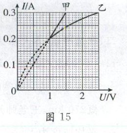 (4)小明利用表中的数据画出了甲、乙两条图线,如图15所示,其中
